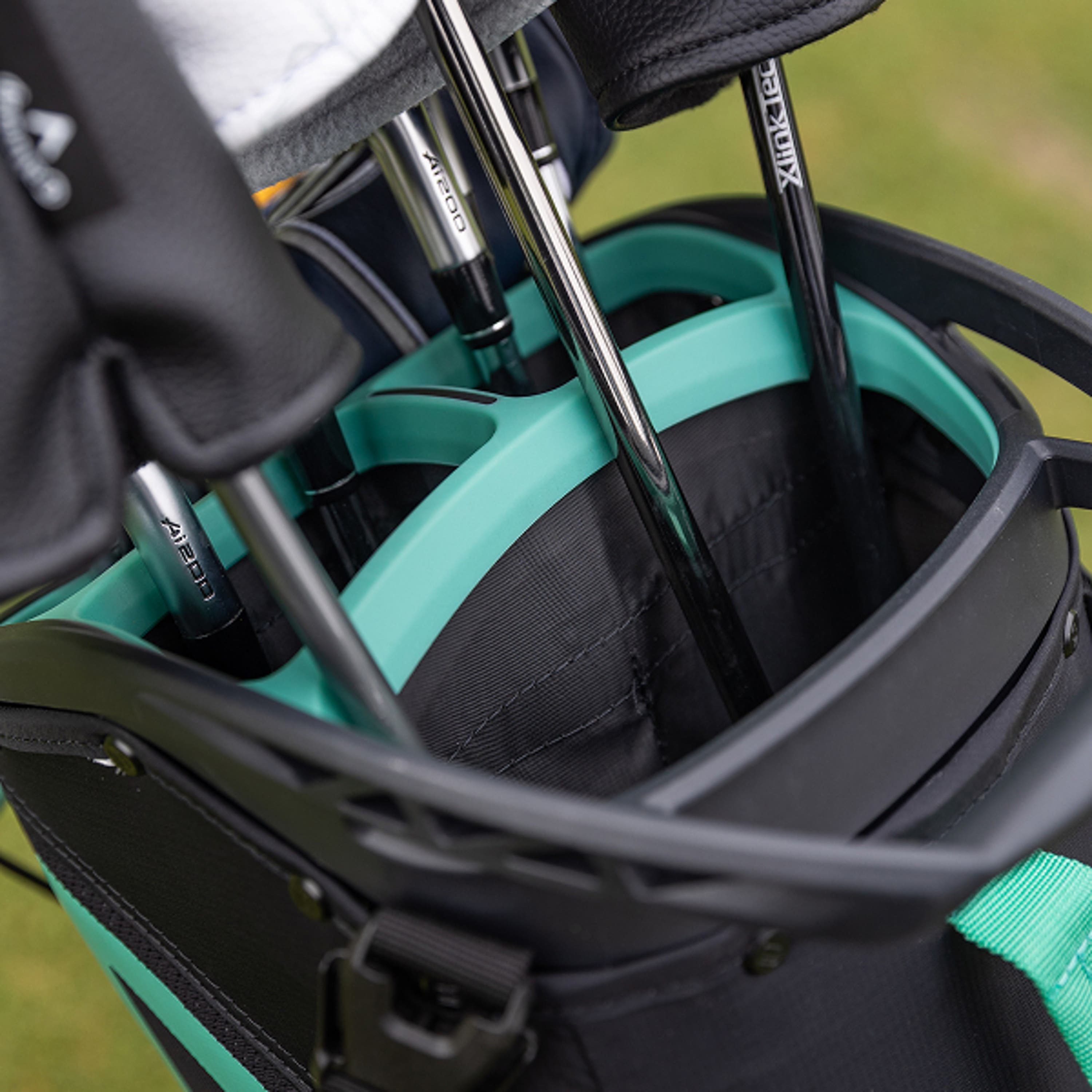 The redesigned strap system glides with stride for a smooth single and double-strap carry, as the fixed position helps maintain a perfect fit every round.