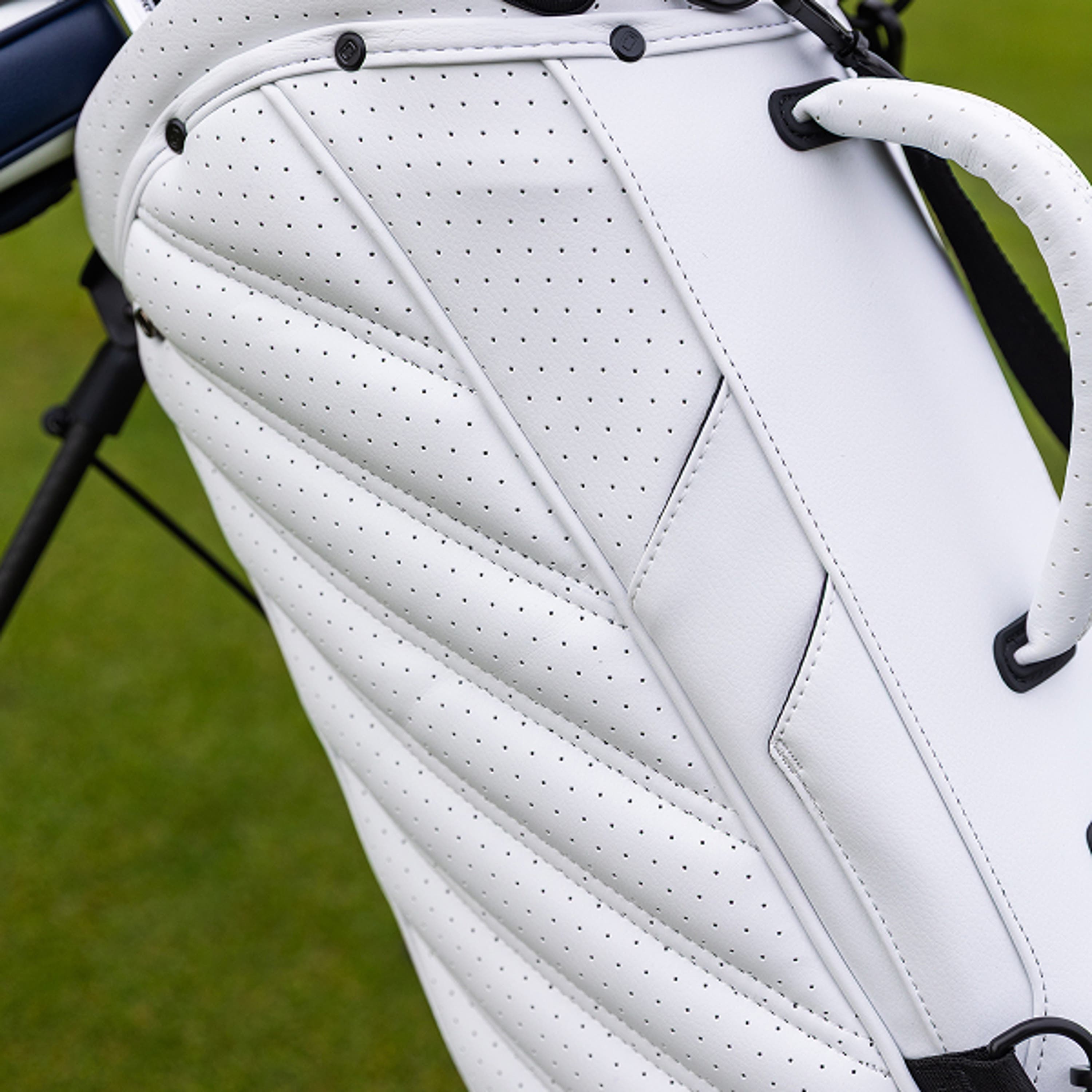 The OGIO Shadow Stand Bag blends luxury craftsmanship with next-level performance. Inspired by the aerodynamic lines and meticulous details of a high-end sports car, this bag is built for golfers who demand both style and function. Its 11 thoughtfully designed pockets keep all your essentials—balls, tees, rangefinder, and valuables—organized and easily accessible, while new clippable straps make setup and carrying effortless. Crafted from premium materials and engineered for precision, the Shadow Stand Bag delivers a seamless on-course experience.