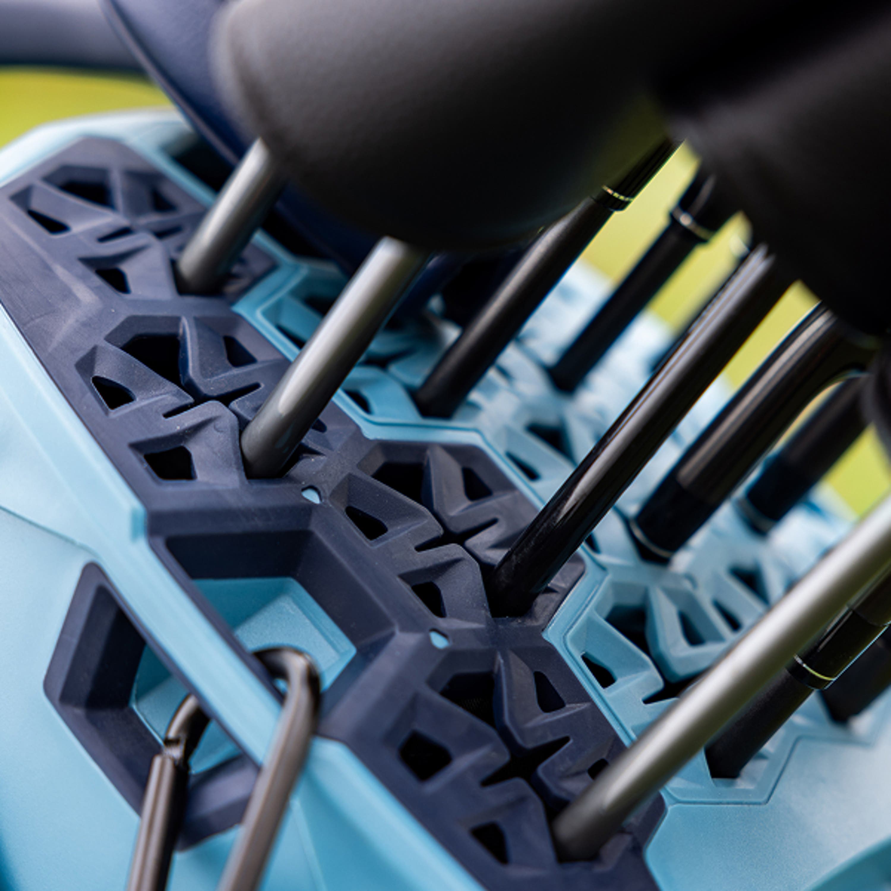 The Silencer Hybrid Golf Bag delivers the ultimate blend of mobility, organization, and premium club protection. Featuring the Woodē top organization system, your clubs stay securely in place while eliminating clatter, letting you focus on your game. With 11 strategically designed pockets and new clippable straps, transitioning between walking, pushing, or riding has never been easier or faster. Crafted from premium materials and engineered with Silencer-level protection, this hybrid bag safeguards your irons and woods while providing the convenience and versatility you need to move seamlessly around the course.